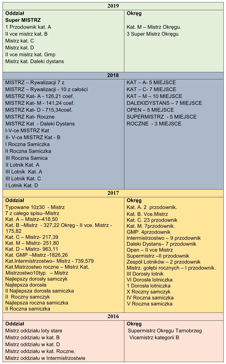 W roku 2019 zdobył między innymi tytuł Mistrza Okręgu kat M oraz tytuł Super Mistrza Oddziału Tarnobrzeg.