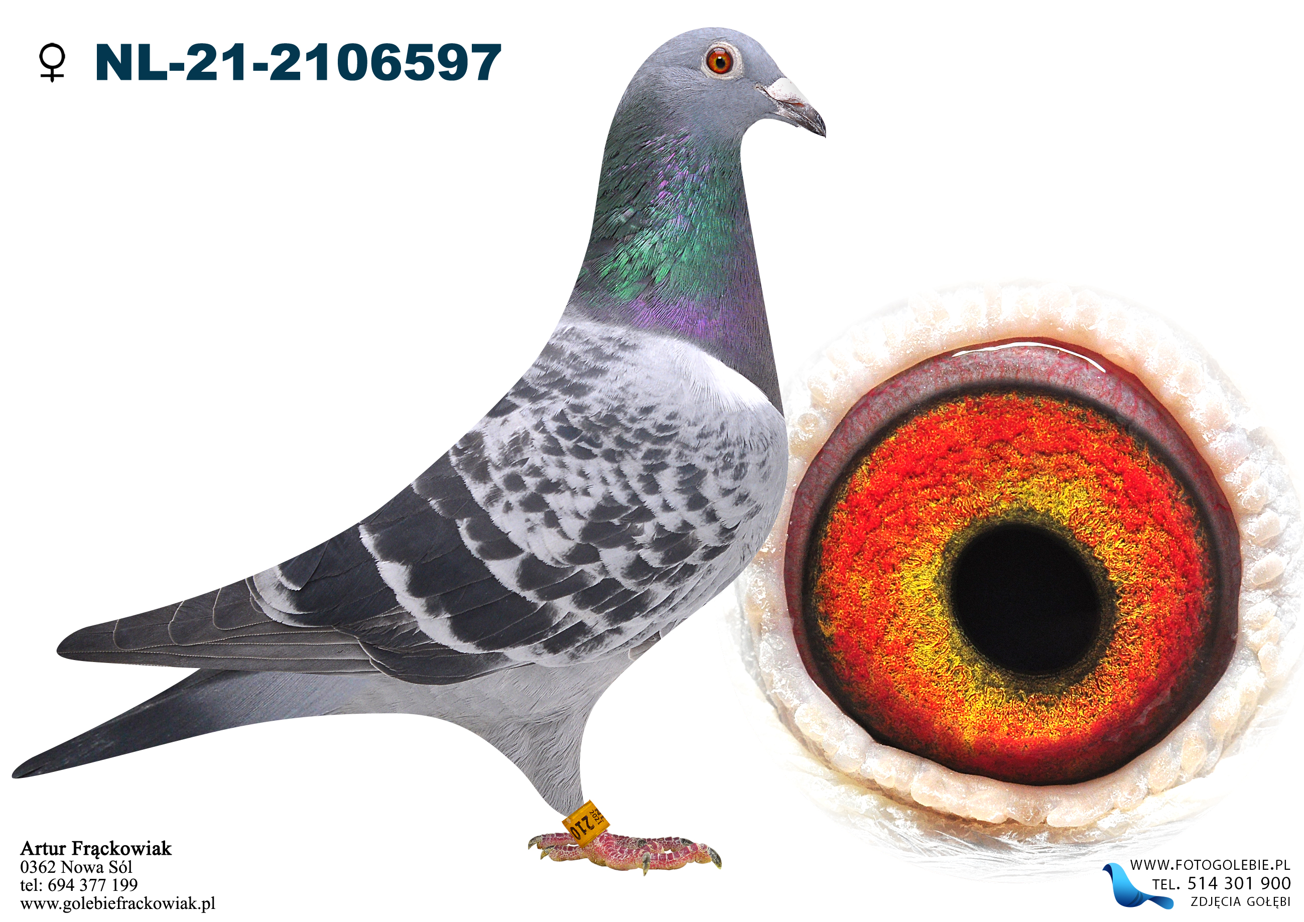 Prawdopodobnie Samica . Pełne rodzeństwo gołębia PL-0362-22-7360 - 37 konk. Lot Finałowy podwiatr przy 30 stopniach ! Gołębie z tej lini rówież dobrze radza sobie w lotach oddziałowych . Wnuczka 1063 o numerze PL-0362-17-233 wylatała super wyniki u kolegów Tarach-Gotowiec dwa lata z rzedu w pierwszej 3 oddz. w Lotnikach , Wnuk 783 o numerze PL-0362-16-7906 w 2018 r. 1 - As Kat B oddz. Nowa Sól i 5 As Kat. B Okreg Zielona Góra .Zdjęcie wykonane 17.11.22 . Wiecej informacji w rodowodzie lub pod numerem tel. po godz 18 . Artur 694377199