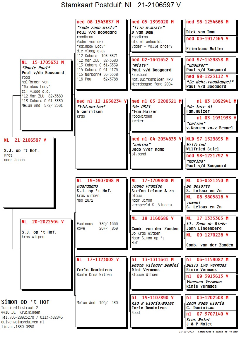 Lotując drugi rok, w pojedynkę, w Oddzile Międzyzdroje 2020 wylatał tytuł Mistrza Oddziału, będąc w pierwszej trójce kazdej kategorii lotowej. Do tego wyniku bez wątpienia przyczyniły się również gołębie z mojej hodowli. Gołąb PL-0362-18-10160 jest obecnie jednym z najlepszych lotników na jego gołębniku lotowym.