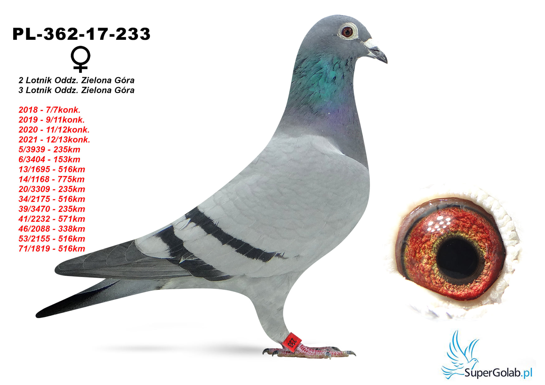 PL-0362-17-233 - w 2021 roku 3. AS Oddziału Zielona Góra - Orginalny gołąb z mojej hodowli.
