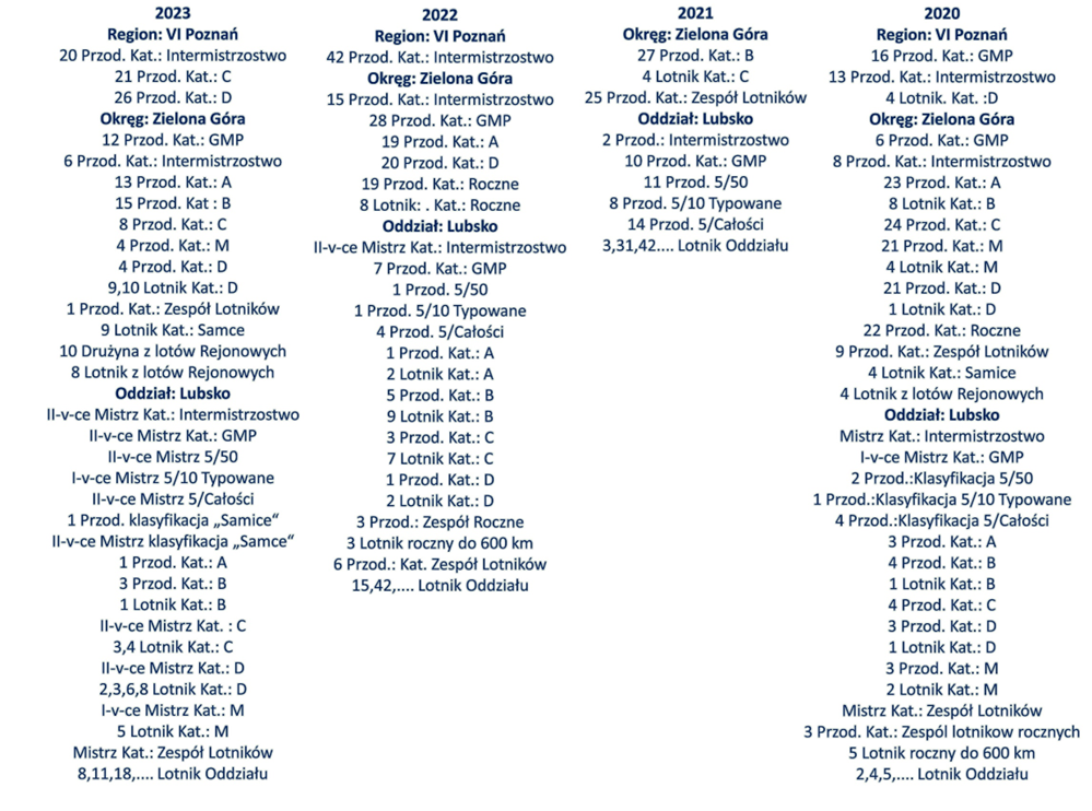 Poniżej wyniki osiągnięć na przestrzeni 4 lat