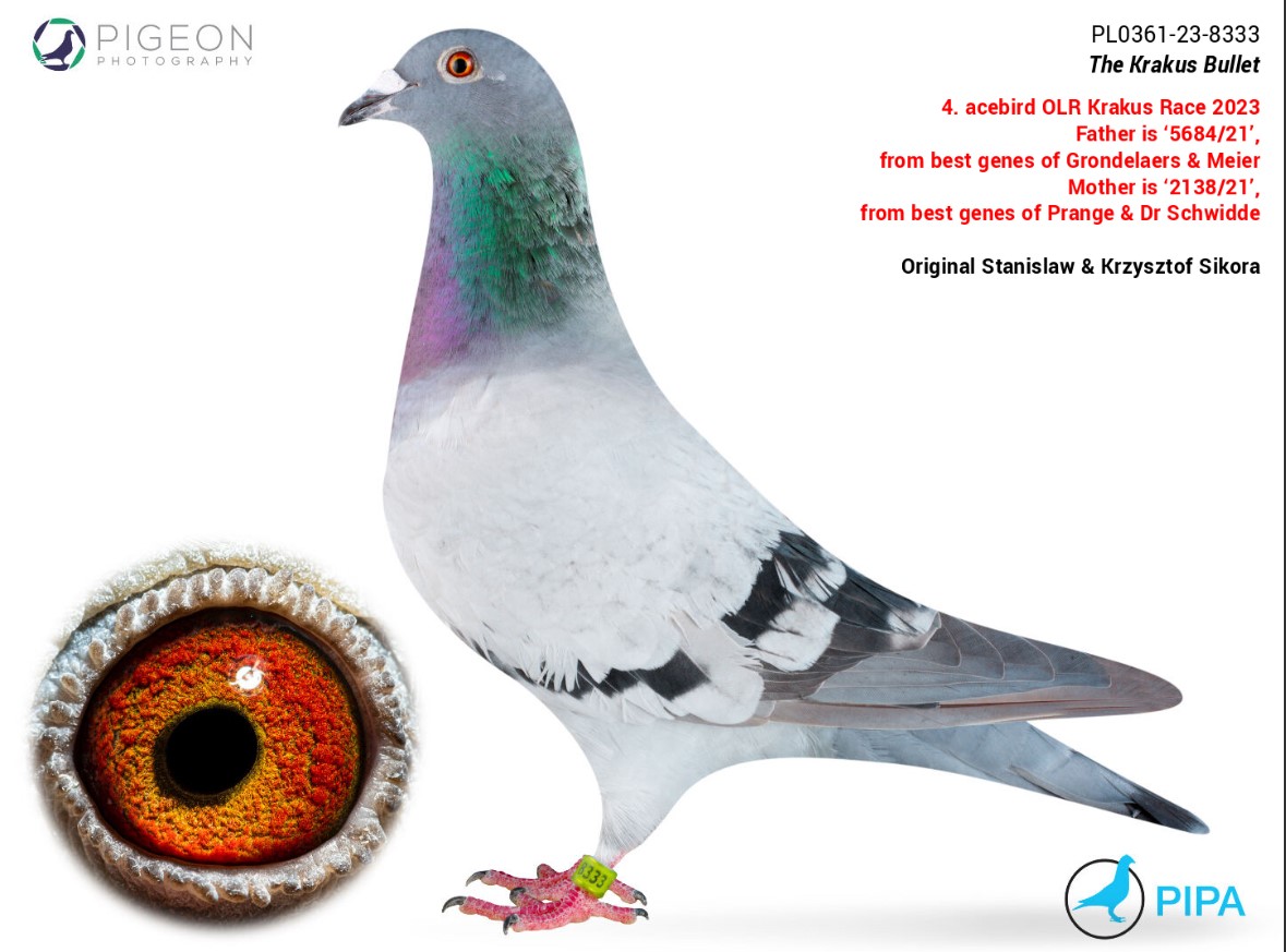 „Super 7619” :2016: 9/14 konk, 3/4398g 350km, ojcem samiczki jest: „DV-05104-10-2459” z hodowli Joachim Bixler, z gołębi Dr. E.H. Schwidde x Günter Prange!!! Od strony matki „DV-07585-12-860” z hodowli Roland Kern 100% Püttmann, ojcem „860” jest „DV-0516-06-1309” z hodowli Rainer Püttmann, „1309” jest wnukiem „Zebran” oraz prawnukiem „Ons Louis” Gerard Koopman. Ze strony matki: „DV-0516-10-1923” z hodowli Rainer Püttmann jego ojciec „1066” Günter Prange jest bratem „1001/1002” wnuk „Vooruit”, „1066” ojciec braci z gniazda „Goliath 404”, „Goliath 405” i „Goliath 406”. Samiczka „1608” - matka, „Goliath 406” najlepszego gołębia rocznego Okręgu 257. „860” jest matką „14-7619” :3 konk. /4398g -350km (aktualnie w rozpłodzie) i „17-1639”: 1. Konk. / 2830g - 358 km.
