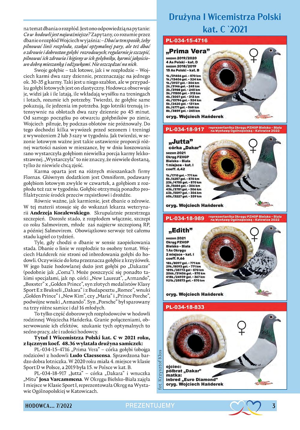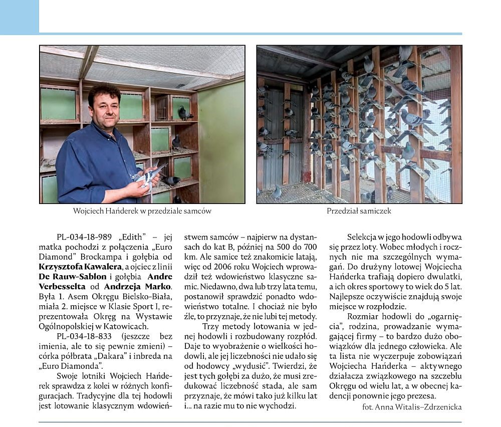 Kol Grzegorz Kubeczek z Oddz Strumień nabył w tym roku 50 młodych gołąbków mojej hodowli. Lotując nimi uzyskał następujące wyniki; -Mistrz Oddz Strumień ( 20 gołąbków zdobyło komplet konk 5/5 po lotach zostało 41szt) -Mistrz Rejonu Ziemia Cieszynska -Wynik GMP 940.70