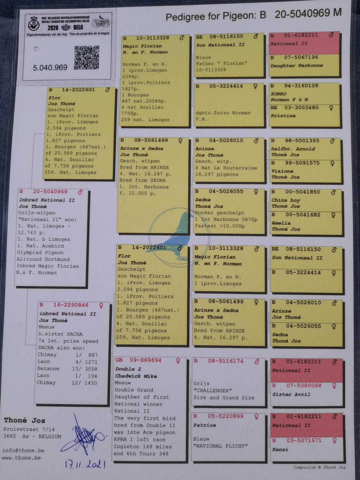 BELG-20-5040969 - oryginalny samczyk z hodowli Jos Thone!