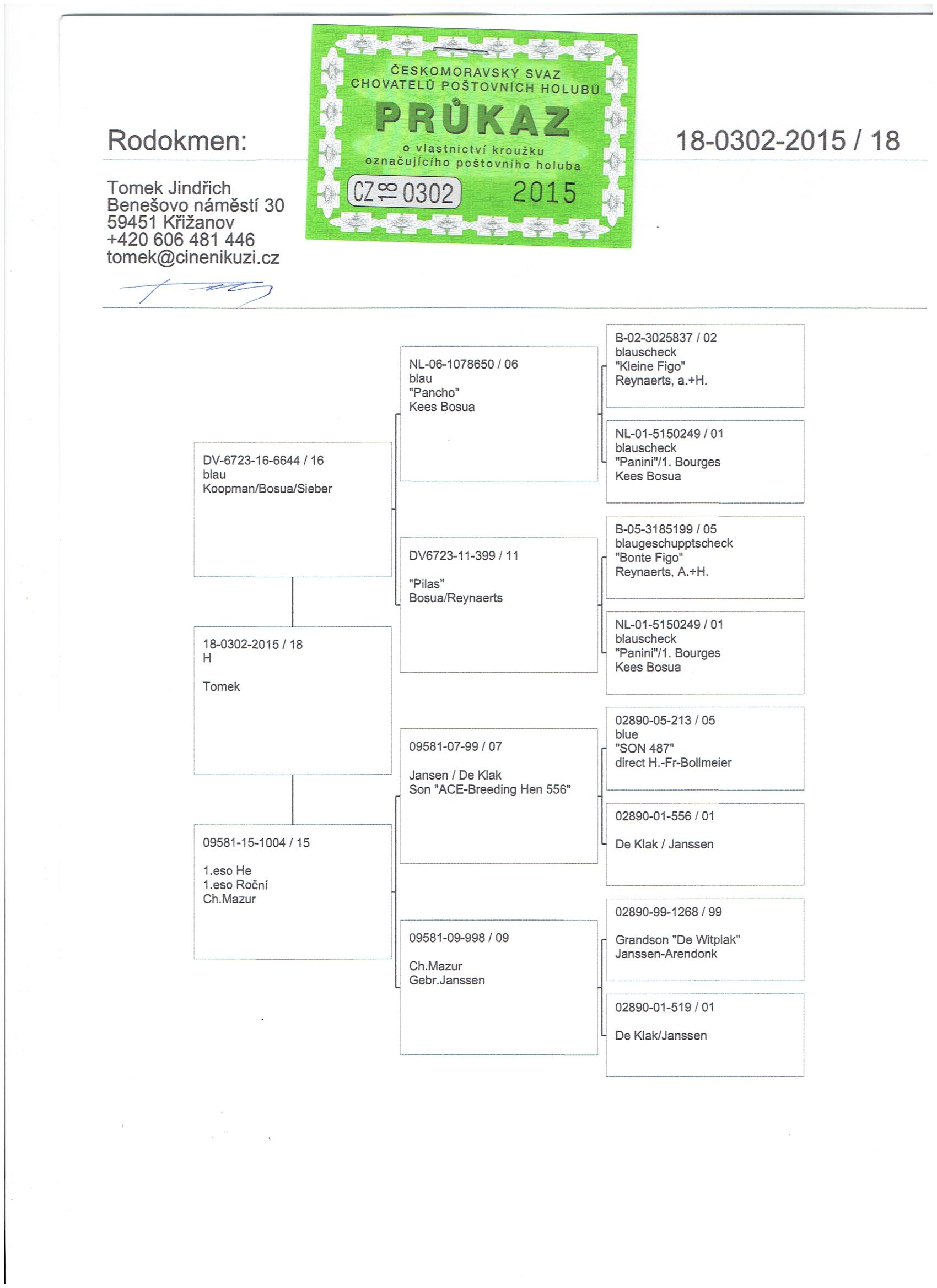 CZ-0302-18-2015 BOOS H i G Drygała Mistrzowie Polski kat A 2012 r gołąb rozpłodowy