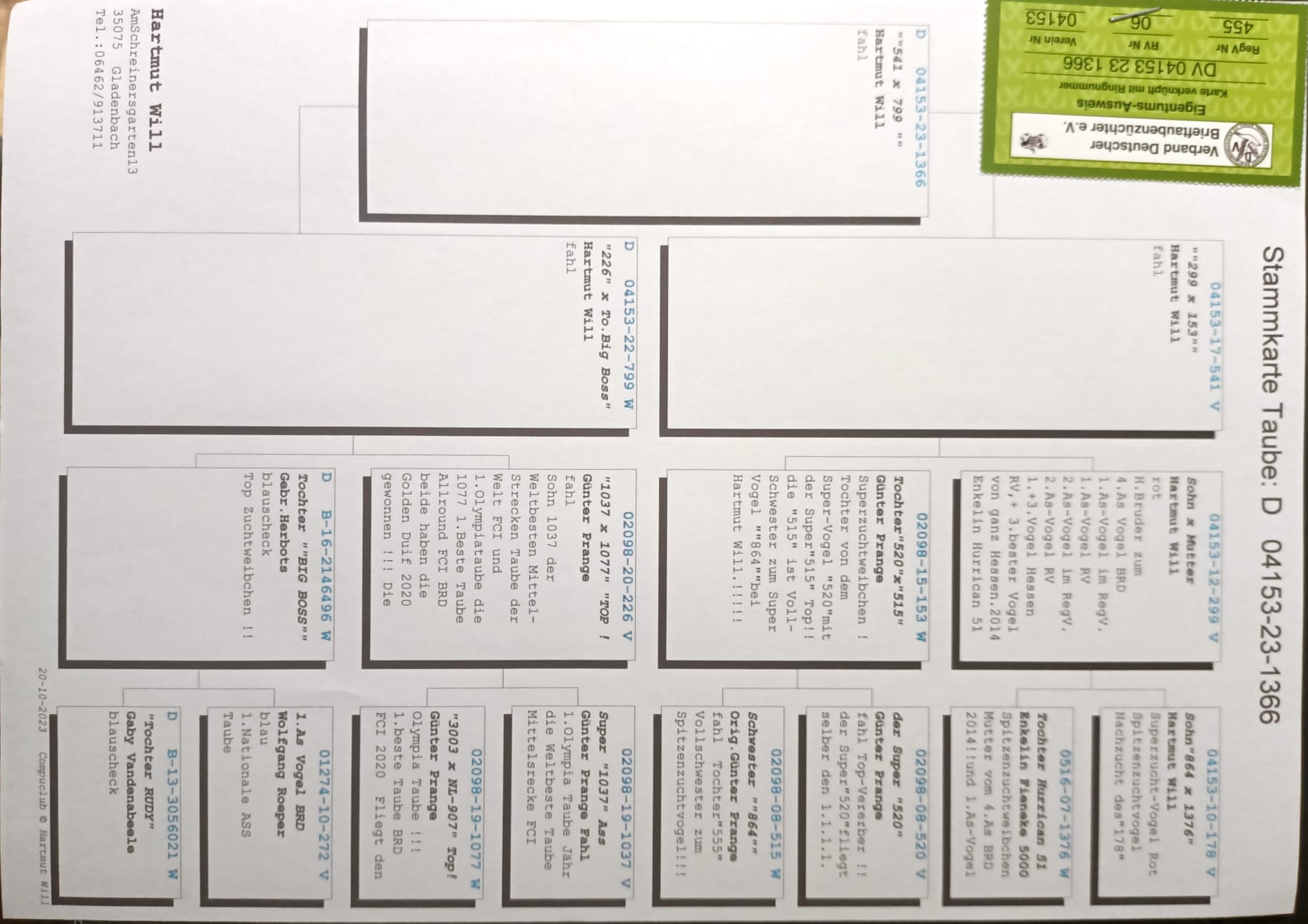 DV-04153-23-1366 - w rodowodzie 520, olimpijczyk 1037 Gunter Prange