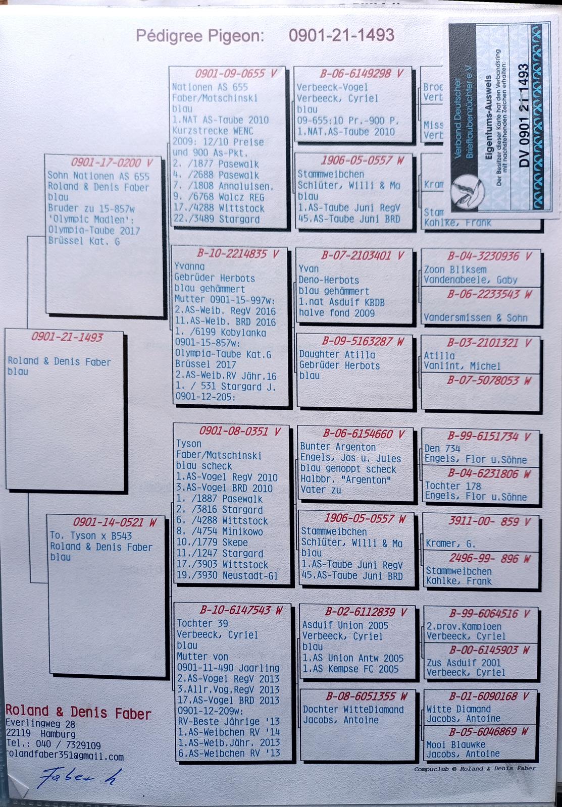 DV-0901-21-1493 - Roland Denis Faber - wnuk TYSONA i 655, ojciec gołebia to brat olimpijki z Brukseli kat G - MADLEN