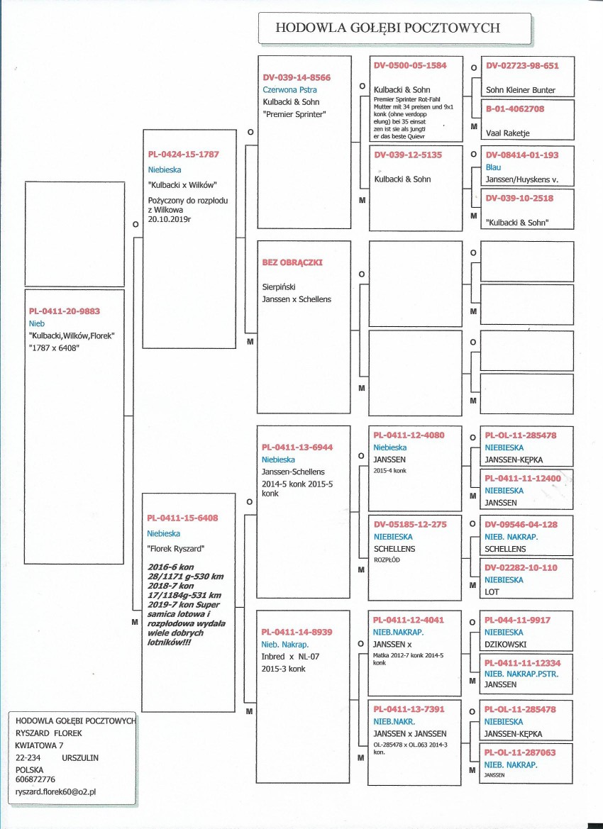 FLOREK RYSZARD PL-0411-20-9883 LINIA "KULBACKI x JANSSEN, SCHELLENS" GOŁĄB MŁODY