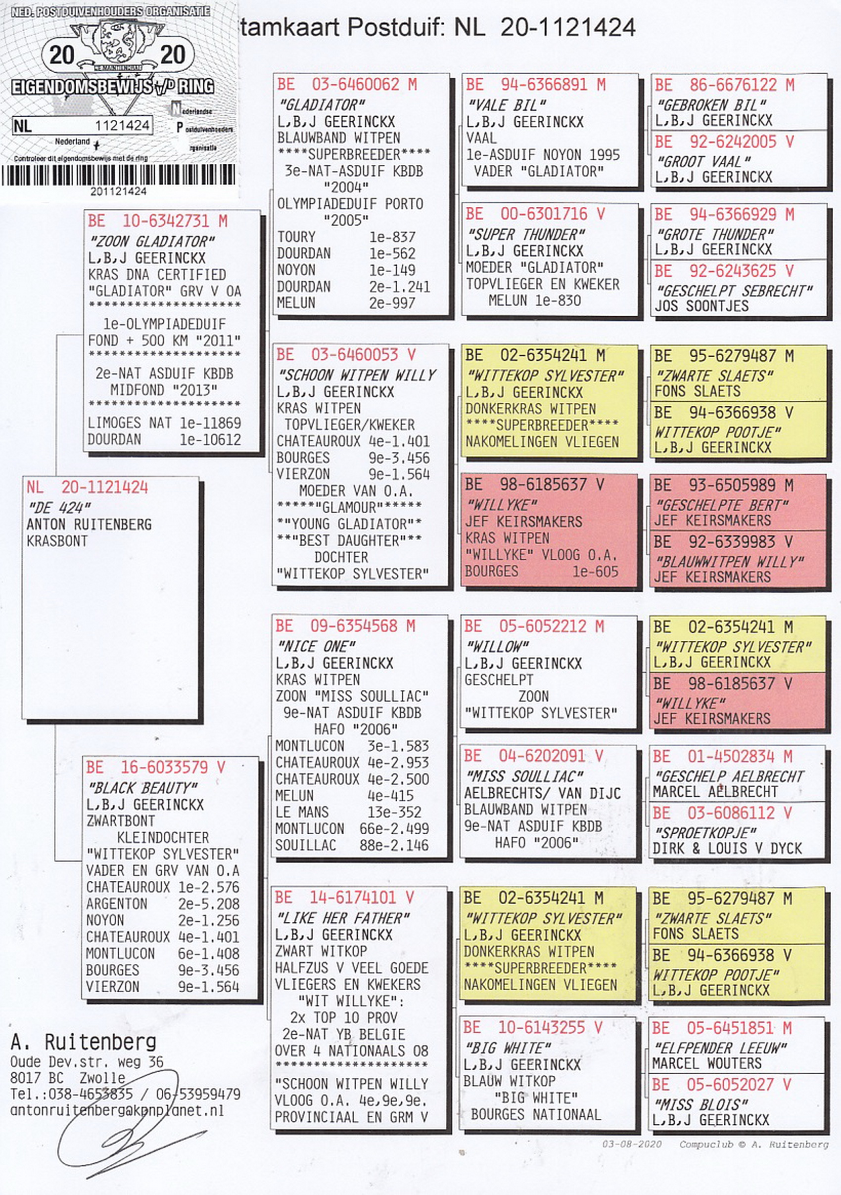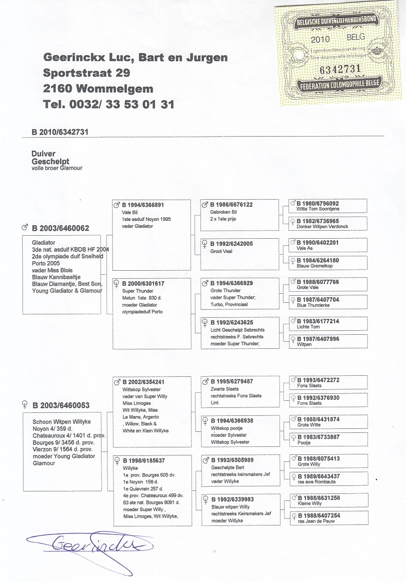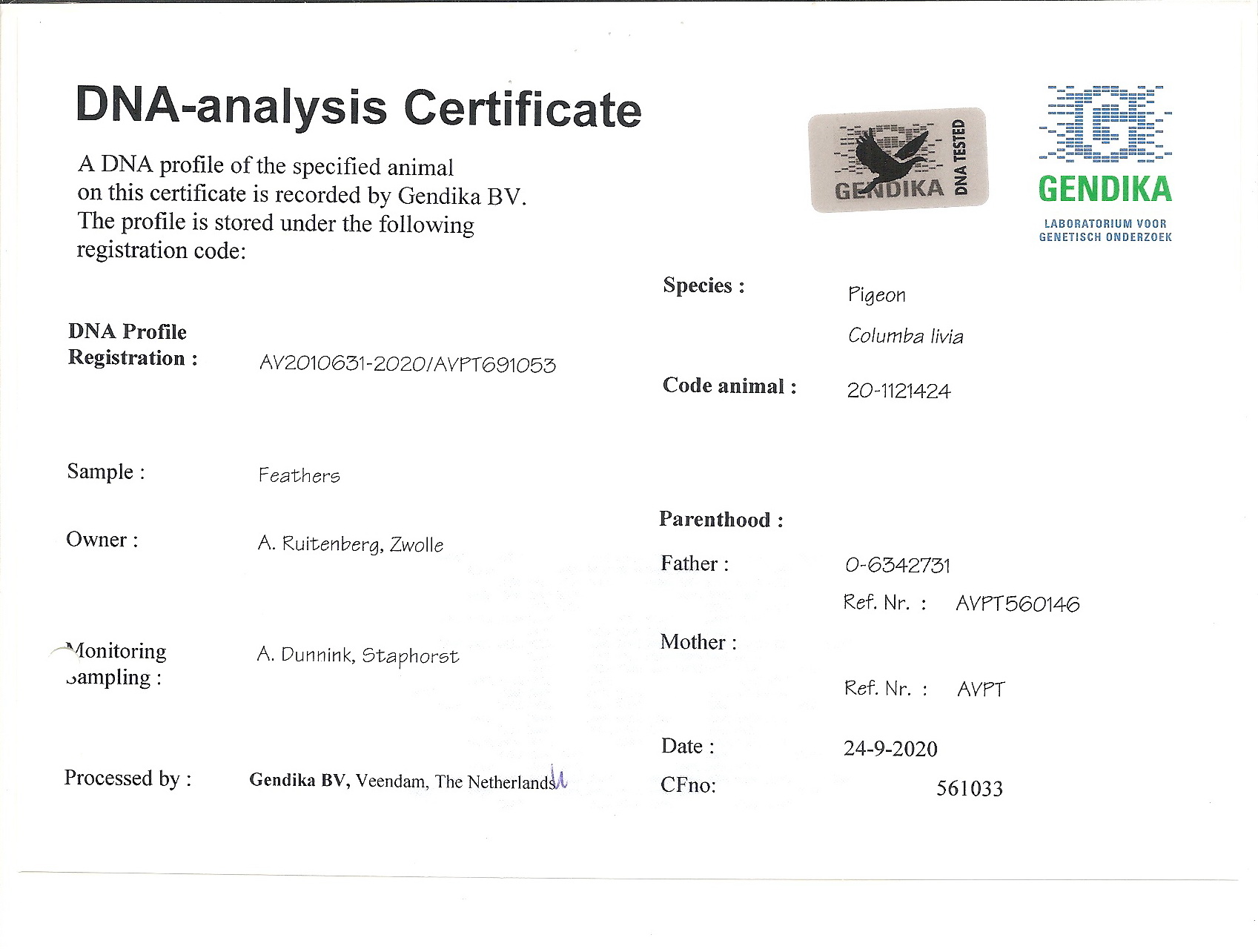 NL-20-1121424. Anton Ruitenberg. Wnuk GLADIATORA. Certyfikat DNA