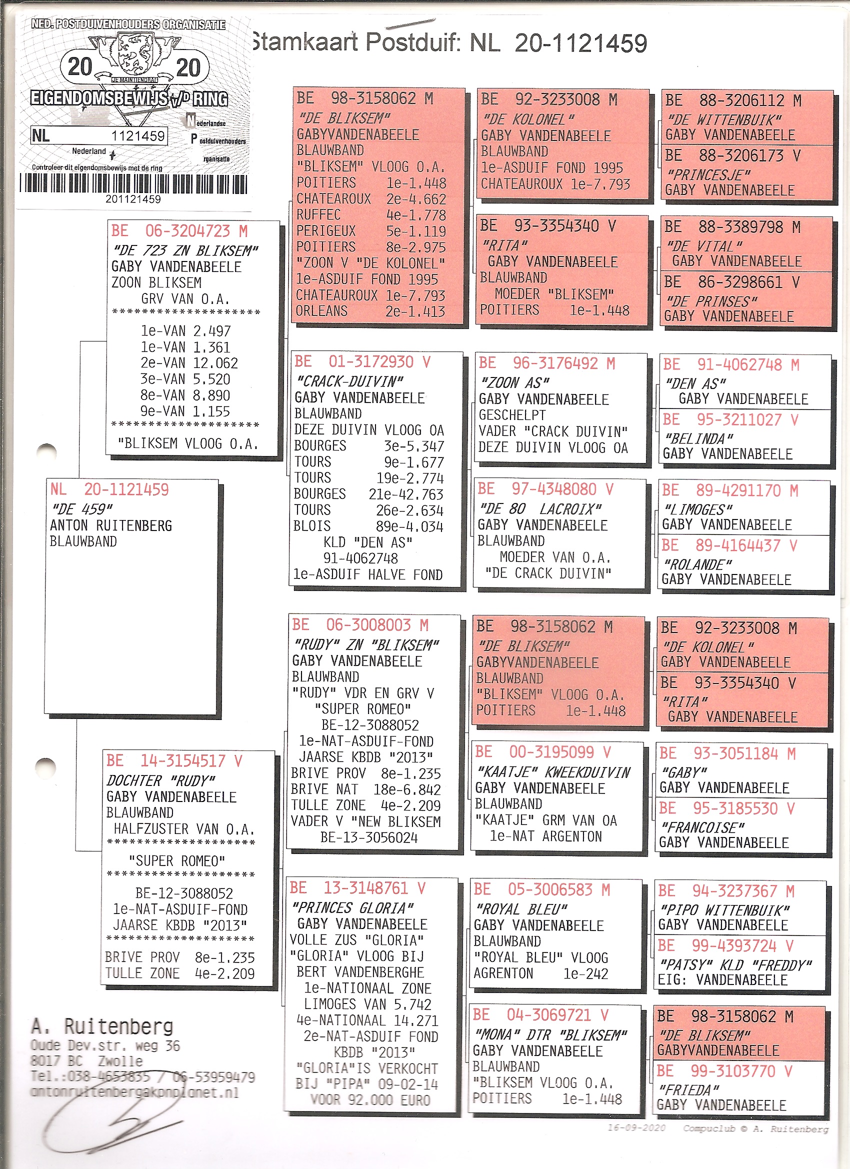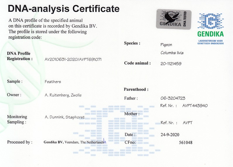 NL-20-1121459. Anton Ruitenberg. Wnuk BLIKSEMA i RUDY. Certyfikat DNA