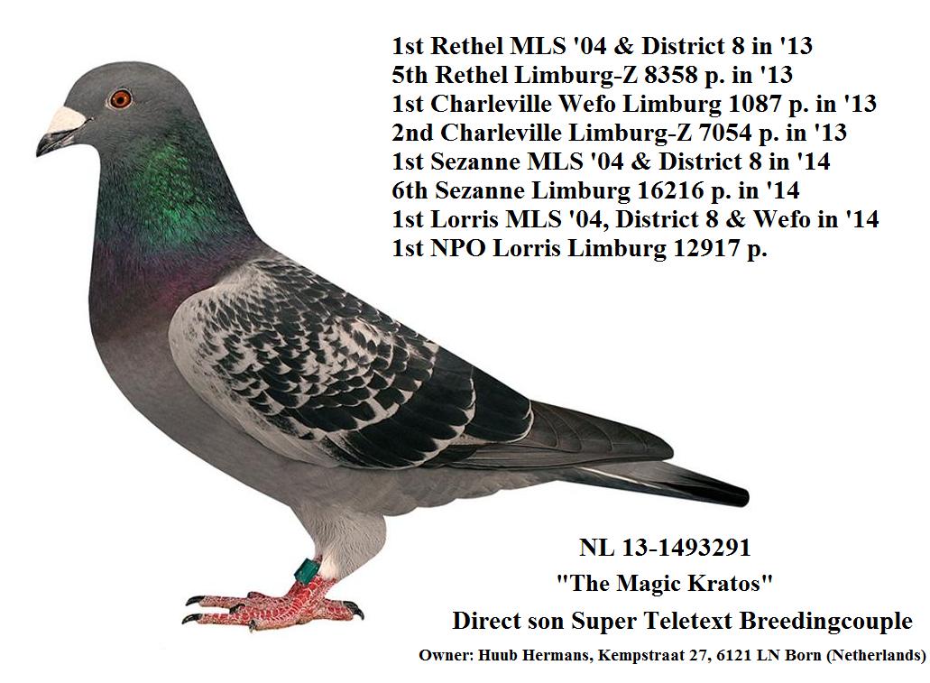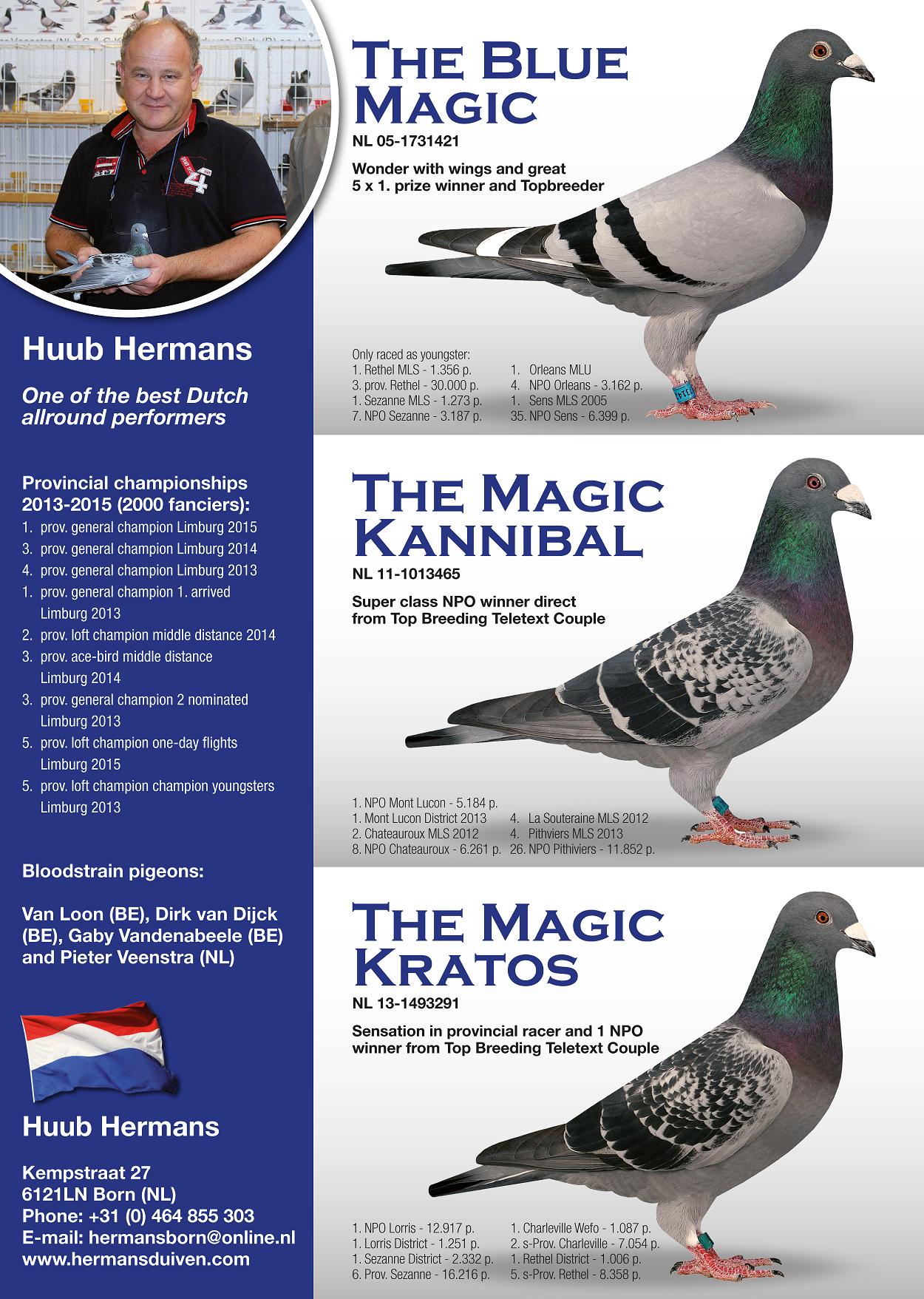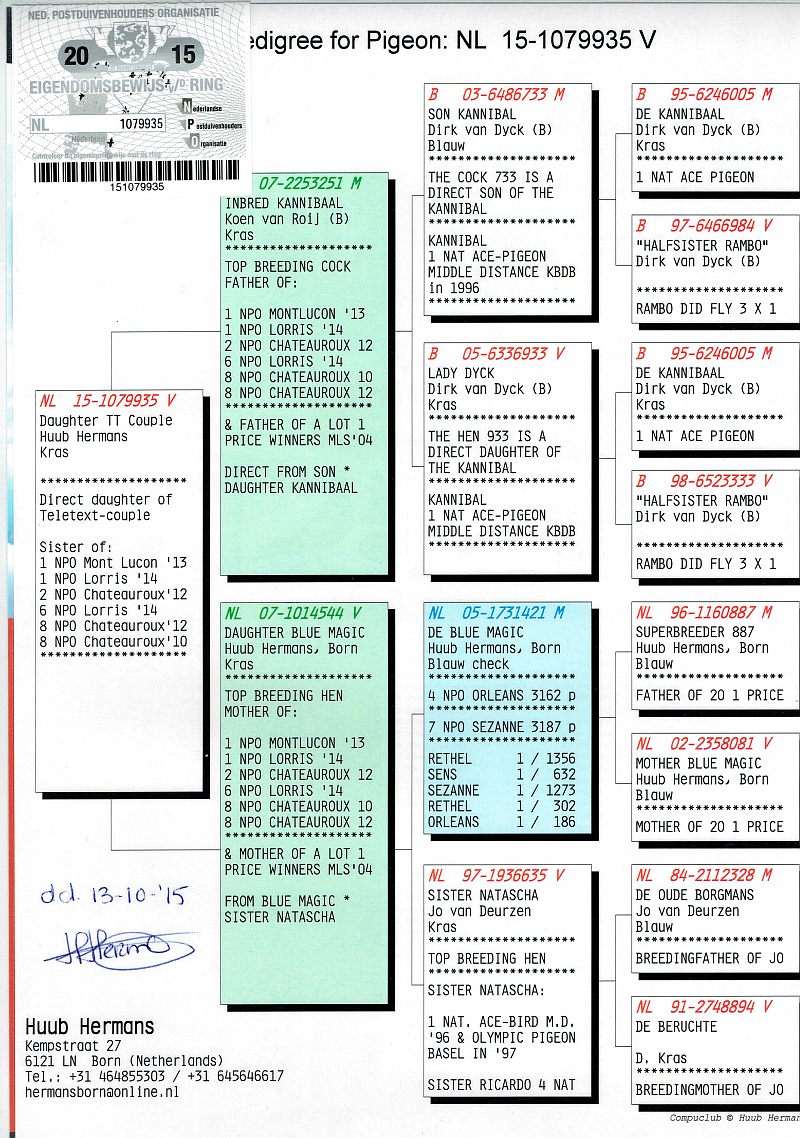 NL-2015-1079935 - oryg Huub Hermans - SYN ZŁOTEJ PARY, linia Kannibaal, De Blue Magic - H i G Drygała Mistrzowie Polski kat A 2012 r gołąb rozpłodowy