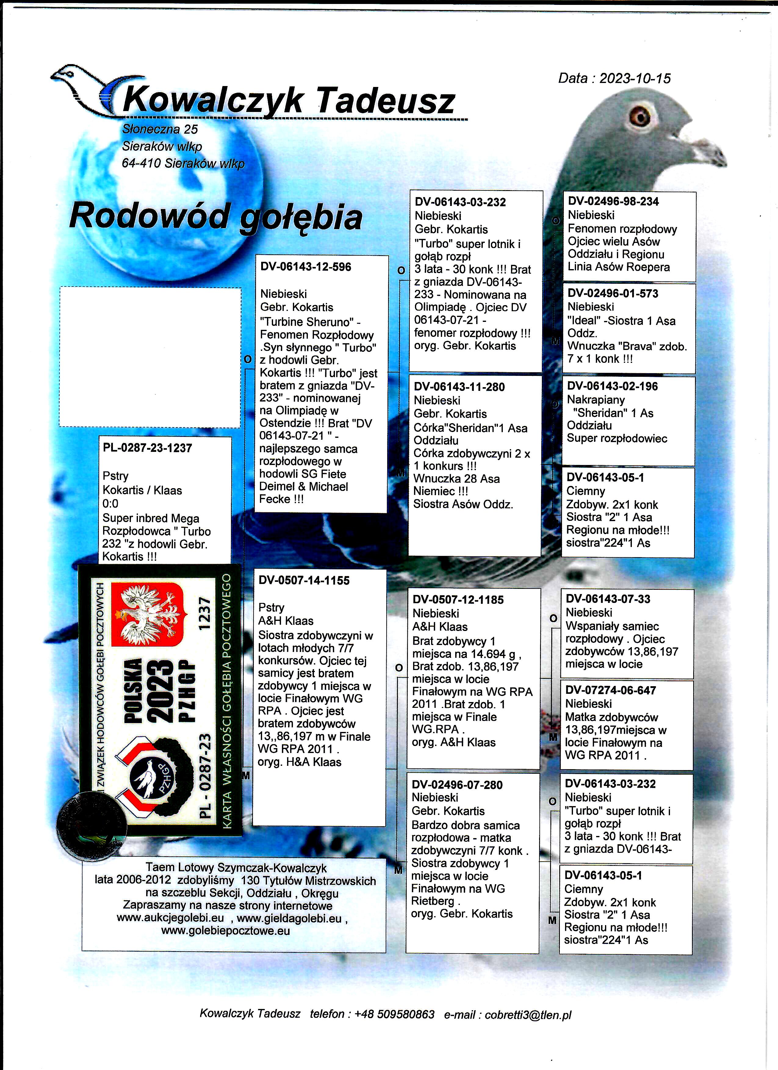 PL-0287-23-1237 Unikat - Inbred słynnego " Turbo " Gebr. Kokartis