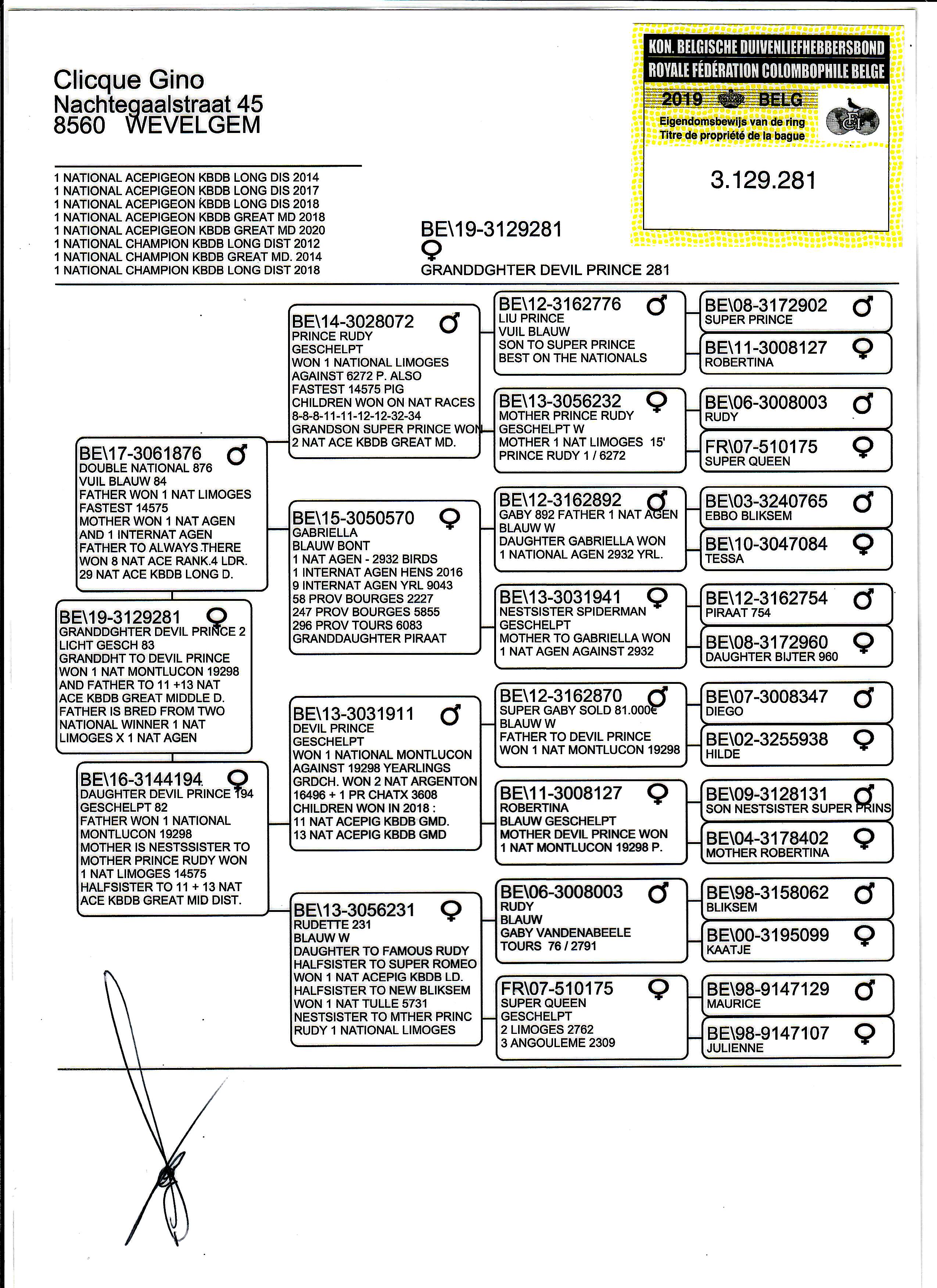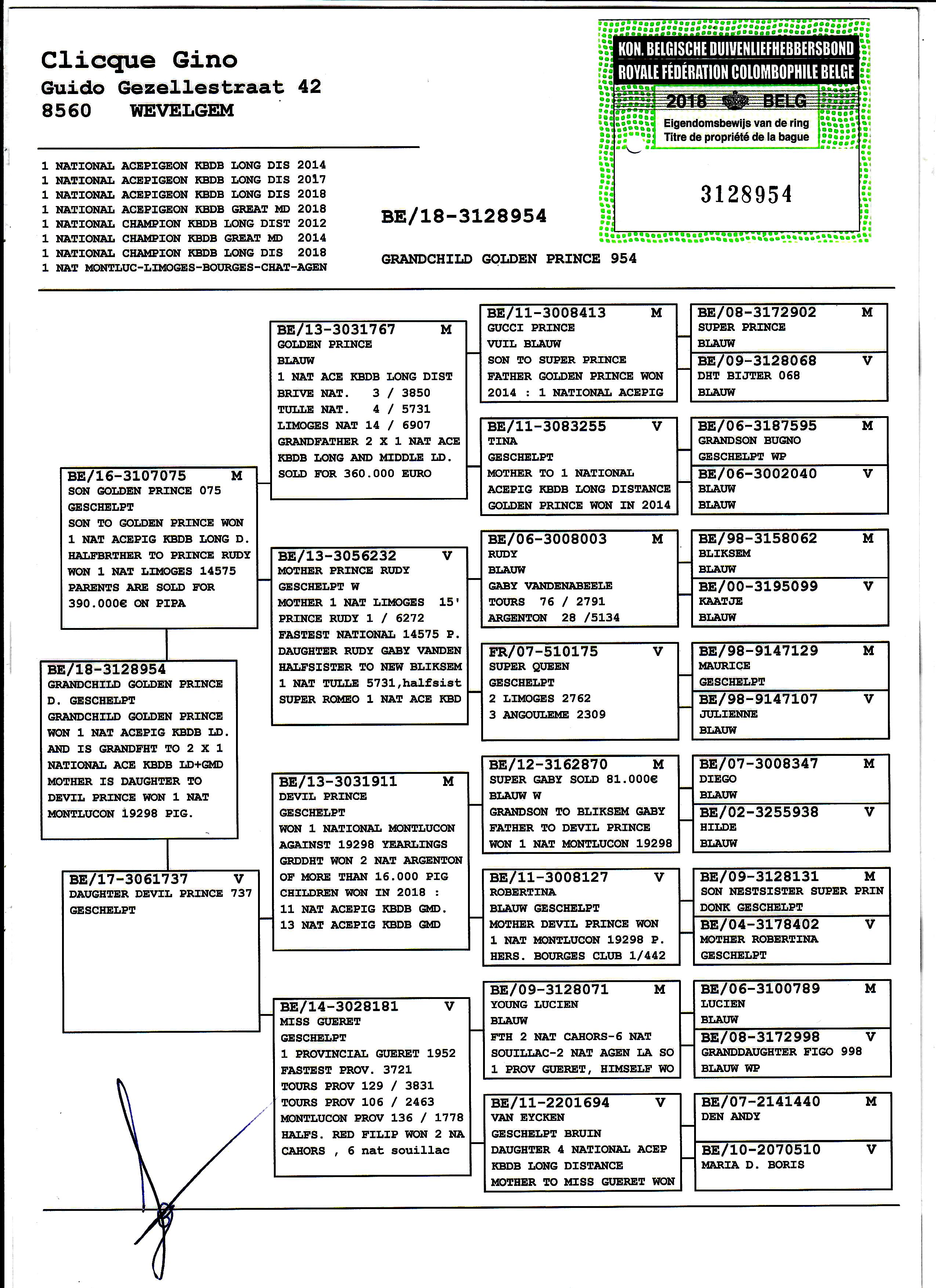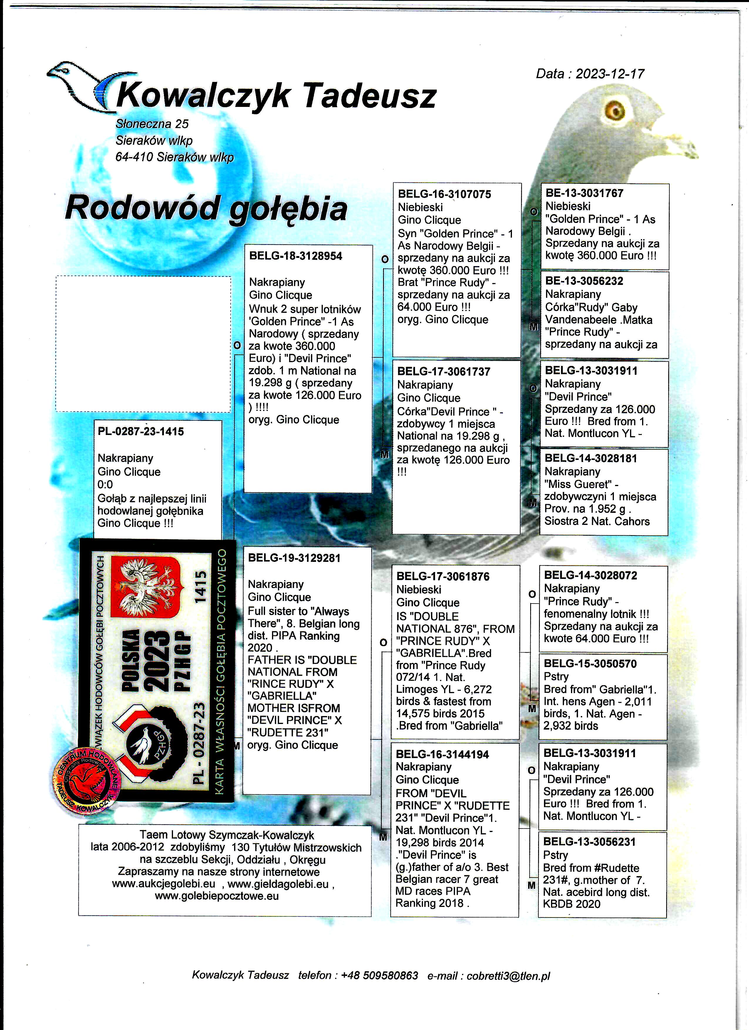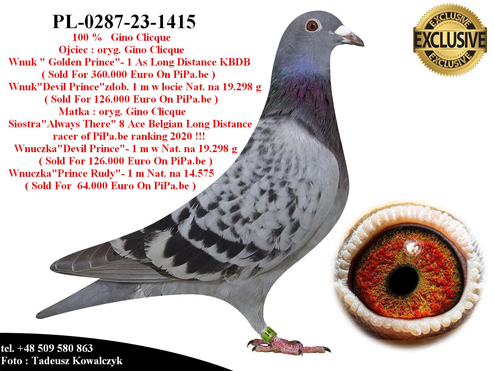 PL-0287-23-1415 Potomek najdroższych gołębi Gino Clicque