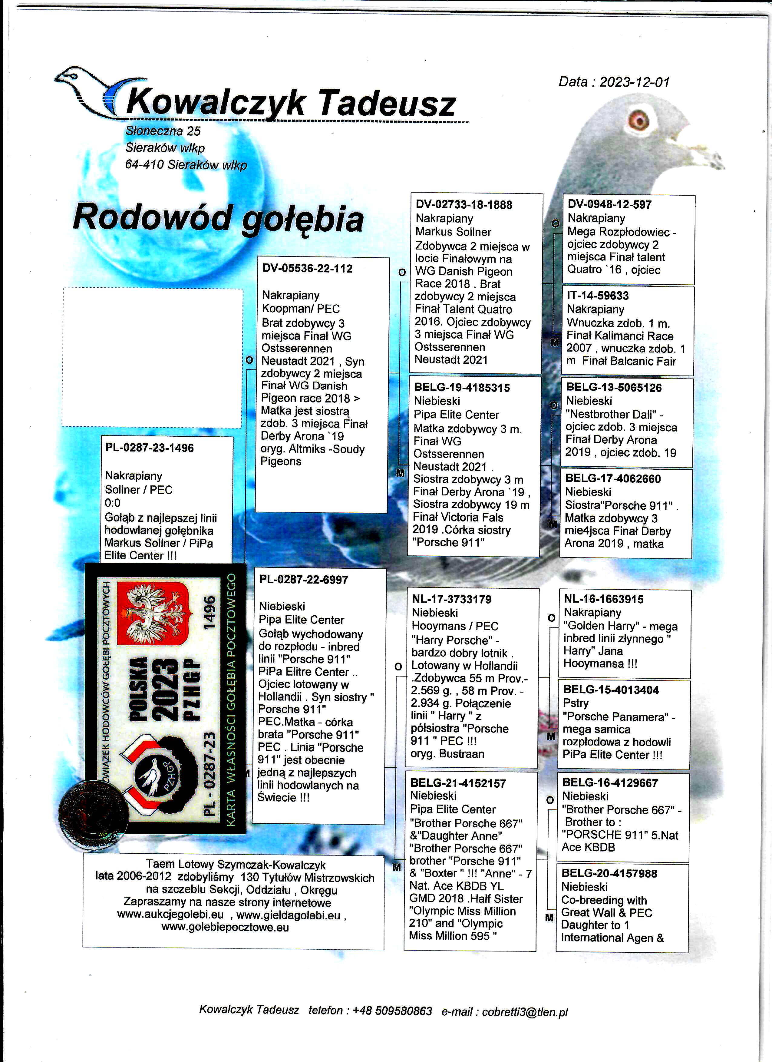 PL-0287-23-1496 Super inbred linii " Porsche 911" PiPa Elite Center