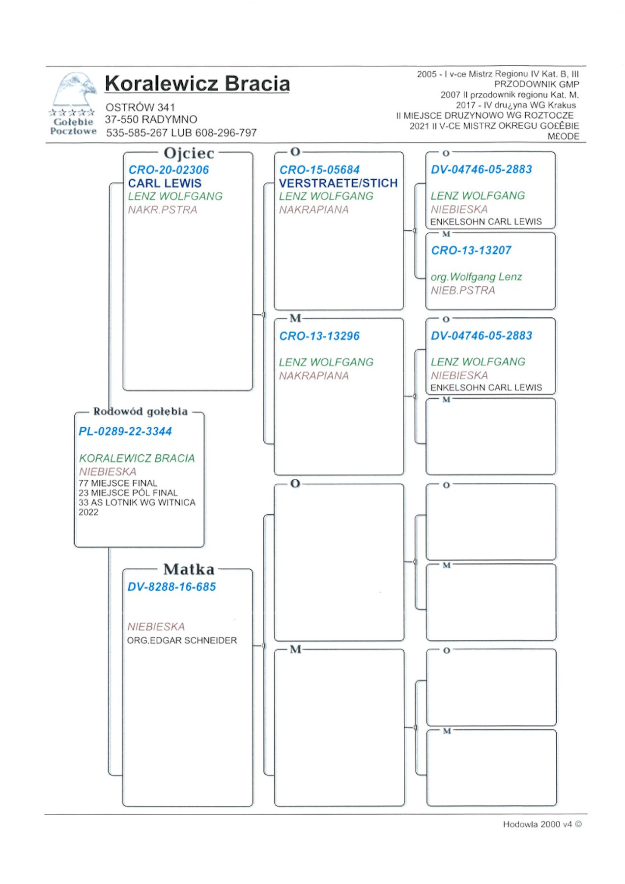 PL-0289-22-3344: Bracia Koralewicz, 33 Lotnik min 97m, 81m, 23m, 77m z FINAŁU Gołąb z hodowli: Bracia Koralewicz