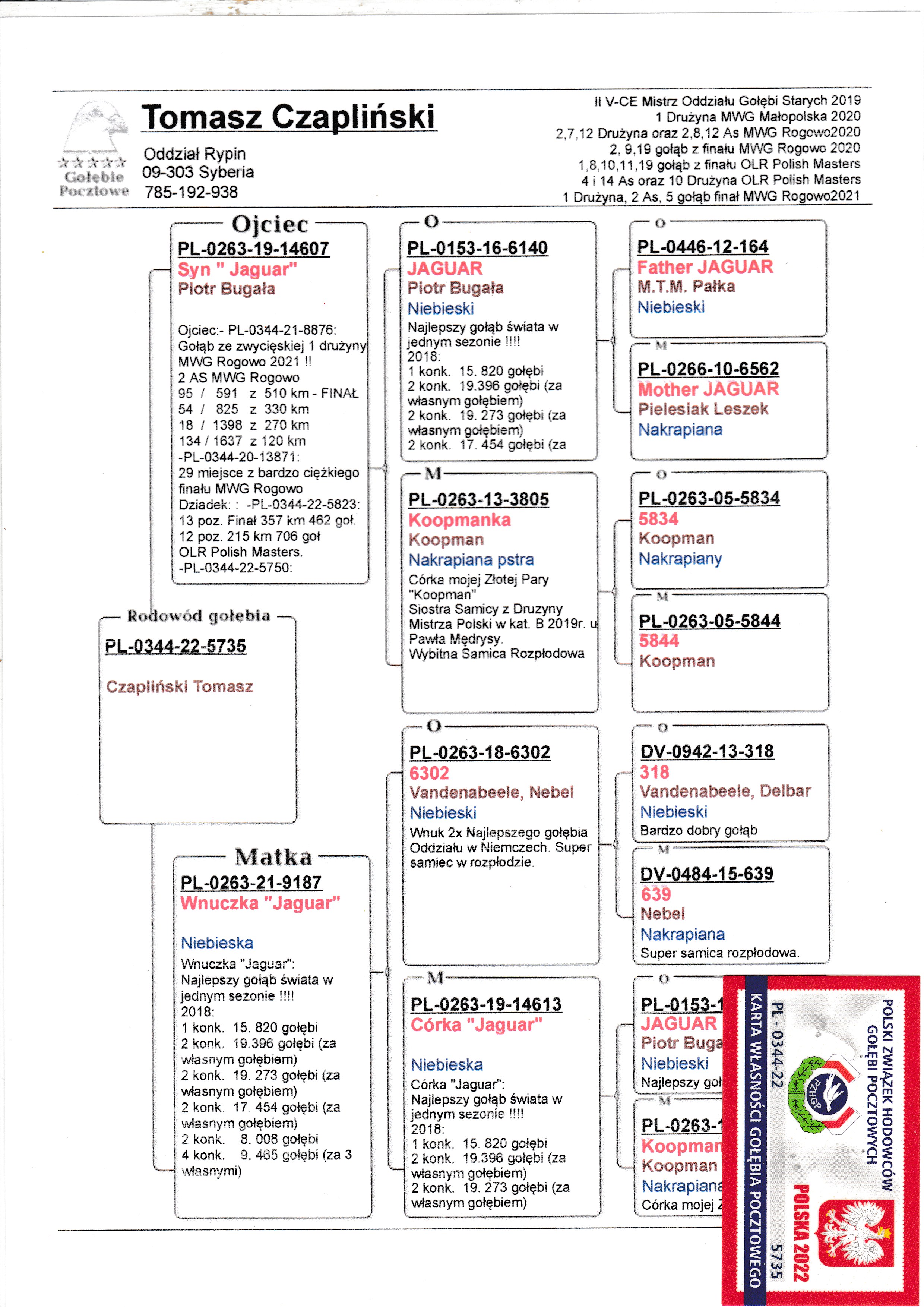 PL-0344-22-5735 -Inbred Jaguar!!!-Najlepszy gołąb świata w jednym sezonie