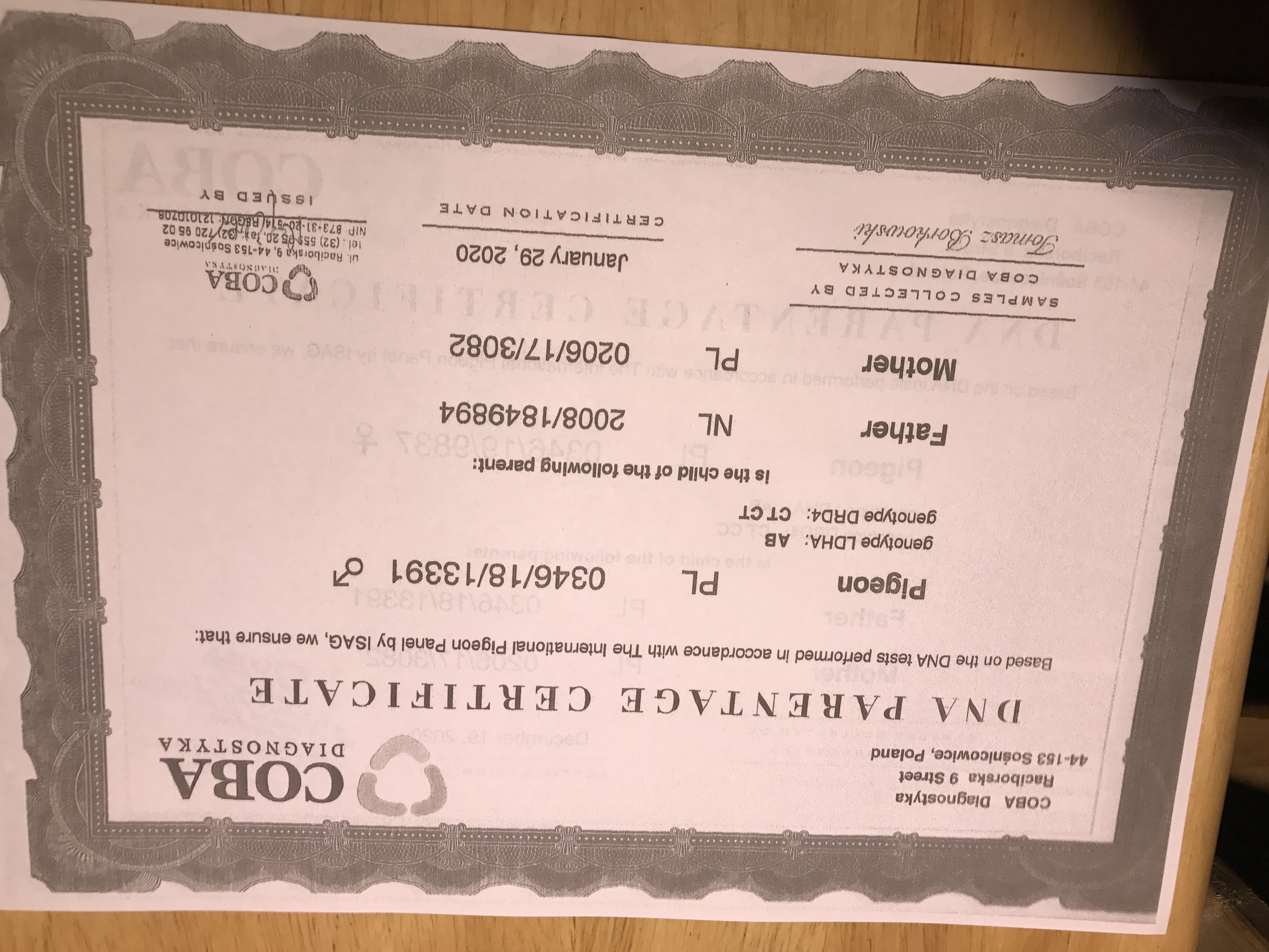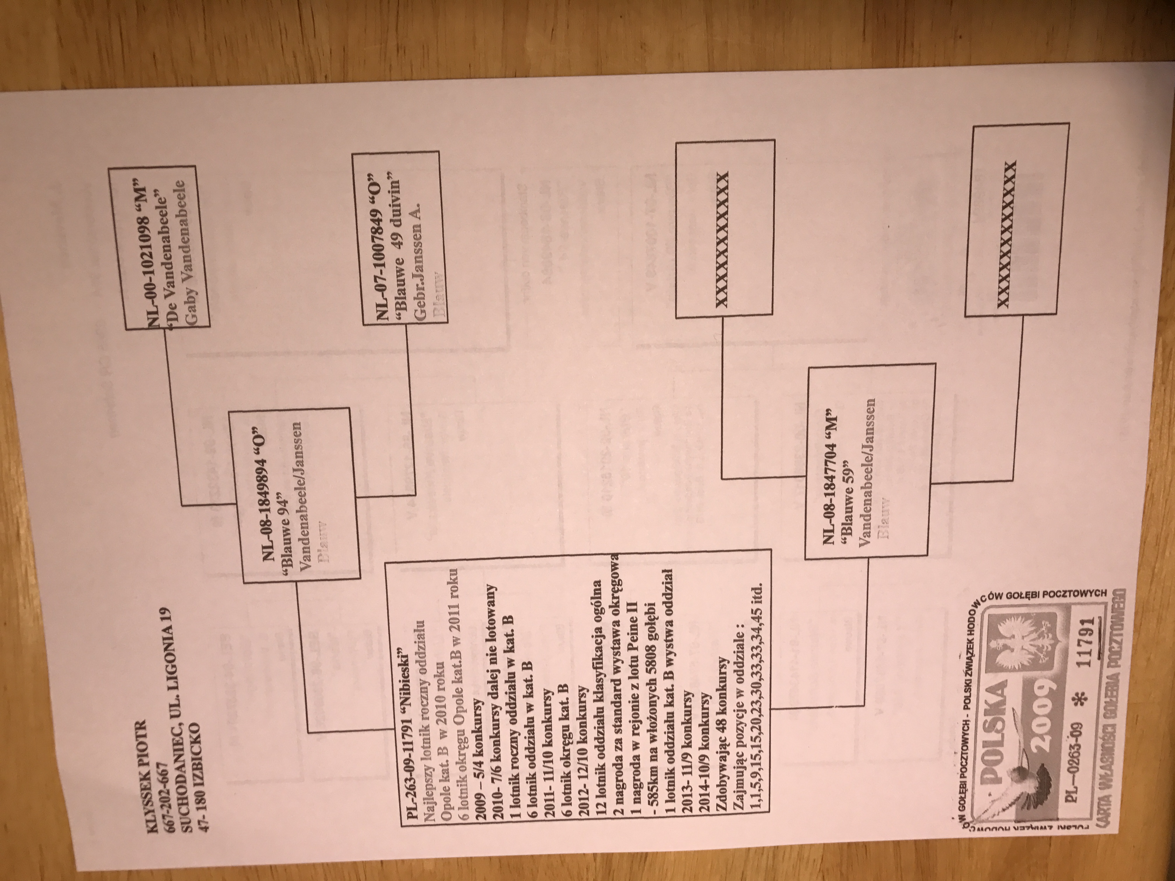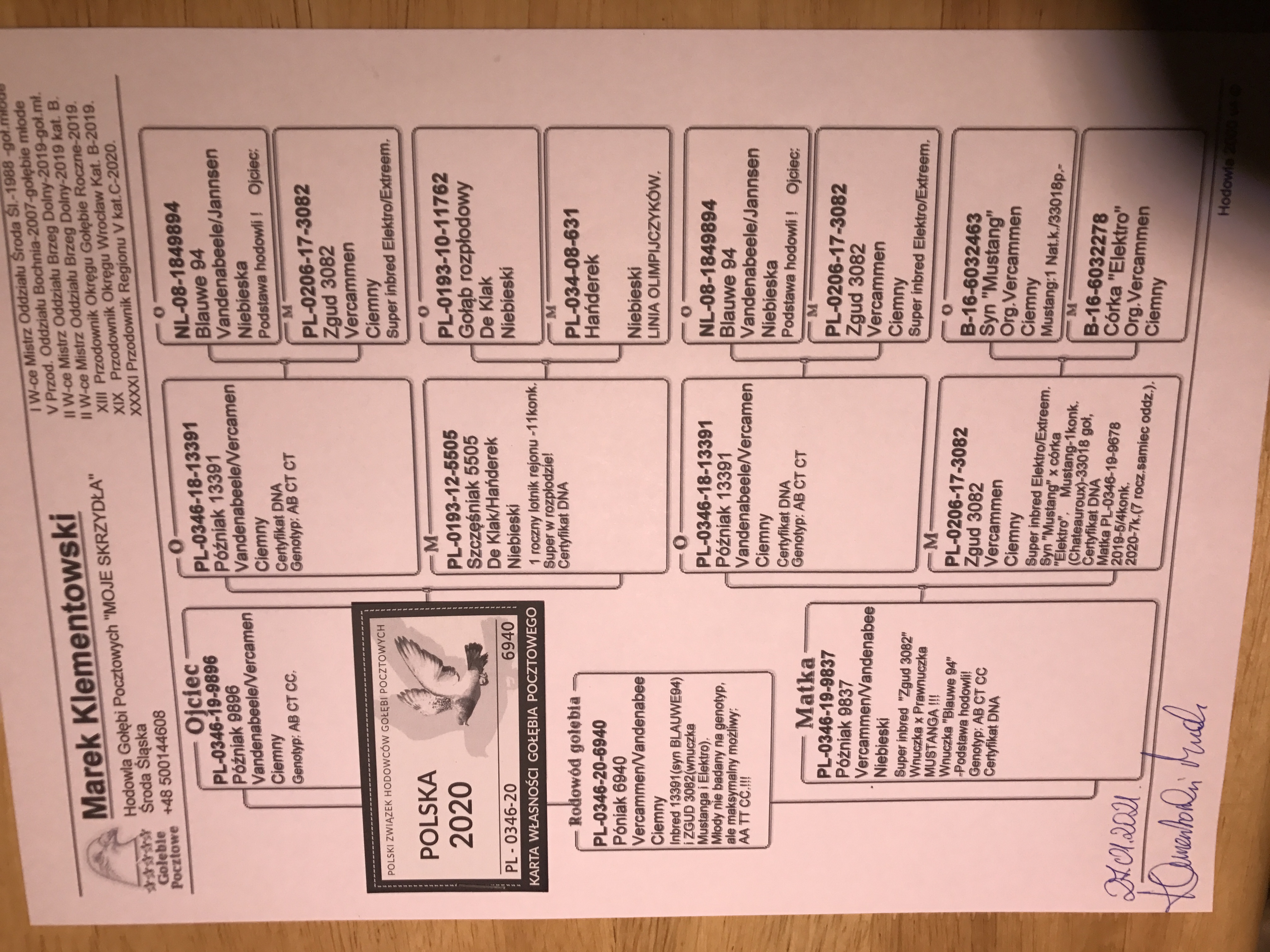 PL-0346-20-6940 Inbred Blauwe 94(syn 13391) i wnuczki Mustanga/Elektro(3082). Genotyp: możliwy AA TT CC