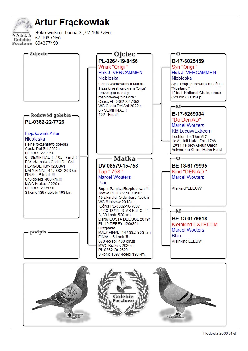 PL-0362-22-7726 Top na Wspólne Gołębniki i loty oddziałowe !!!