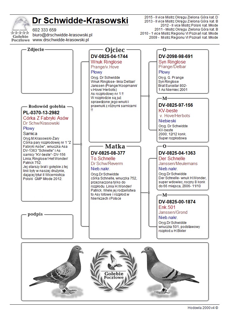 PL-0370-13-2982, córka pary rozpłodowej nr 1 o nazwie Fabryka Asów
