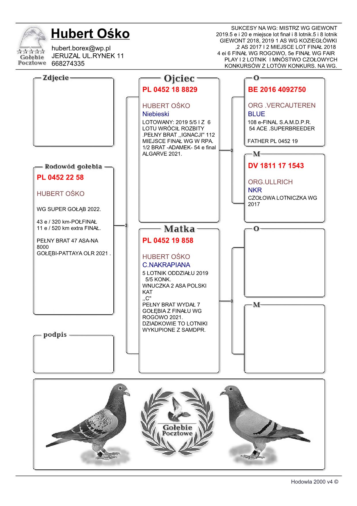 PL-0473-22-58 Ośko Hubert- 11 gołąb Super Cap