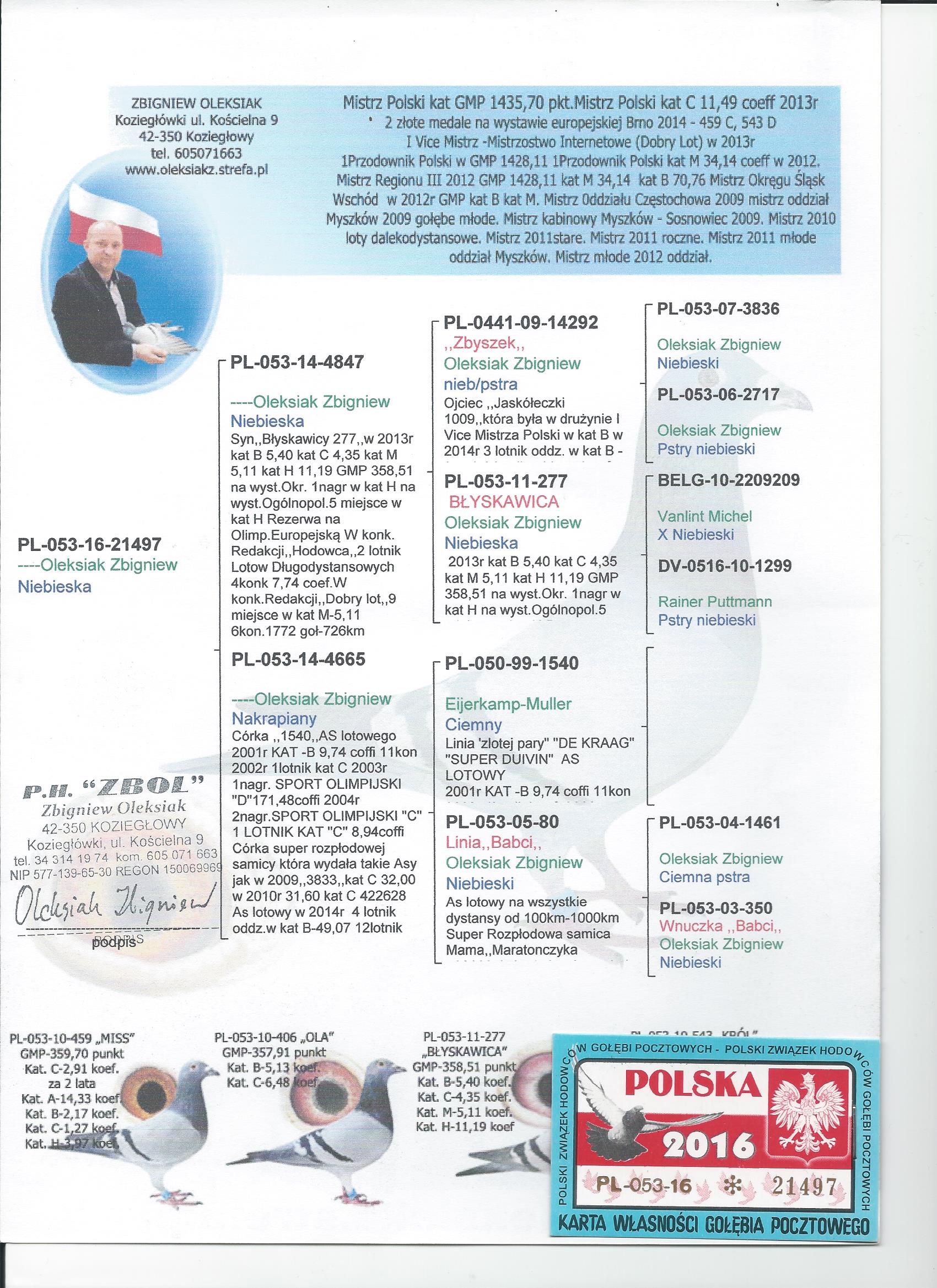 PL-053-16-21497 Z. Oleksiak samiec rozpłodowy