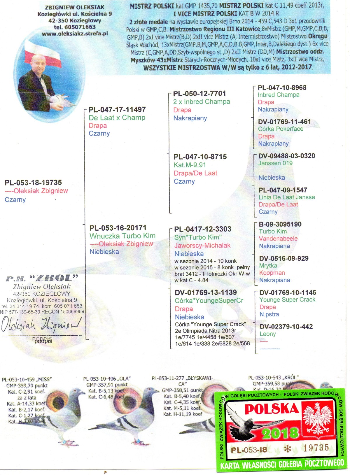Pl-053-18-19735 Org. Z. Oleksiak-linia Champa X Jaworscy-Michalak