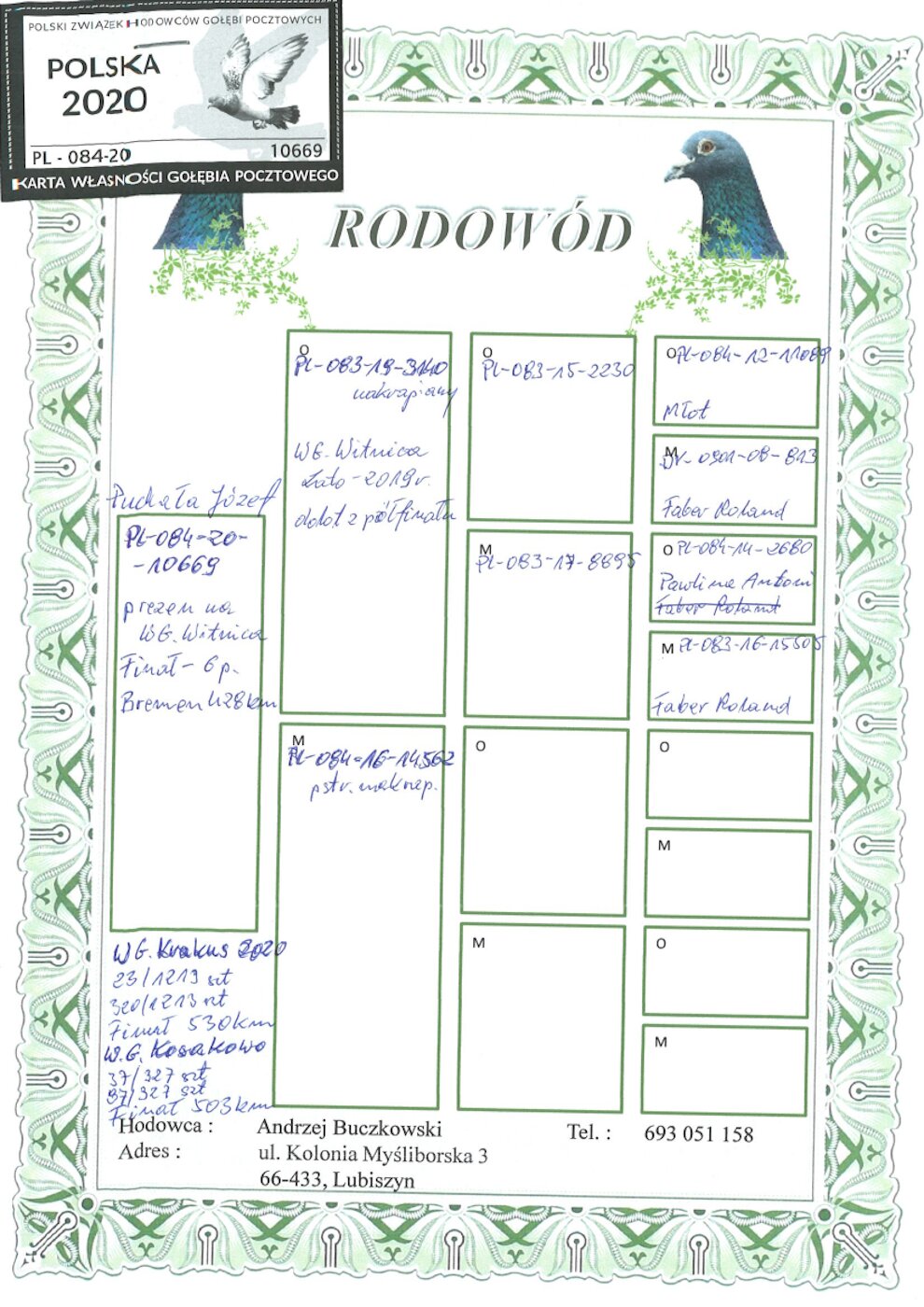 PL-084-20-10669 ŚP. JÓZEF PUCHAŁA PREZENT OD ANDRZEJA BUCZKOWSKIEGO