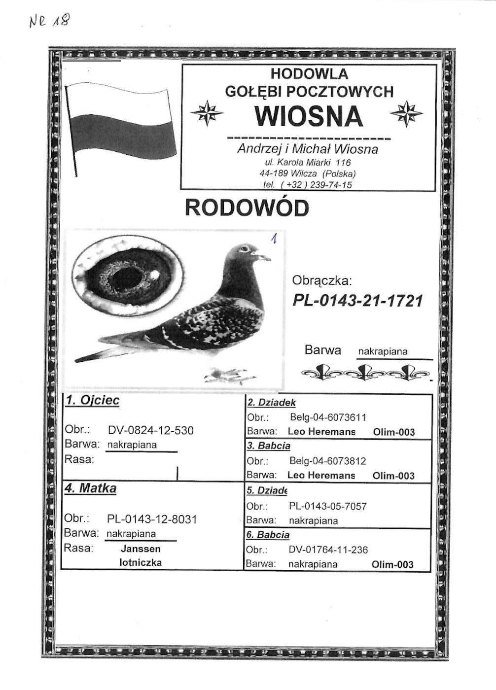 PL-114-22-3163: 16-GAWRON RAFAŁ, m.in 18m, 15m, 16m, 11m, 25m z FINAŁU Gołąb z hodowli: 16-GAWRON RAFAŁ.